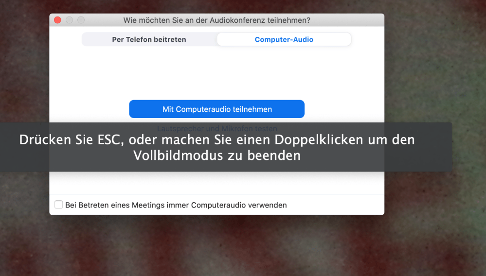 Danach wird dieses Fenster geöffnet, da mit – Computeraudio teilnehmen- anklicken.